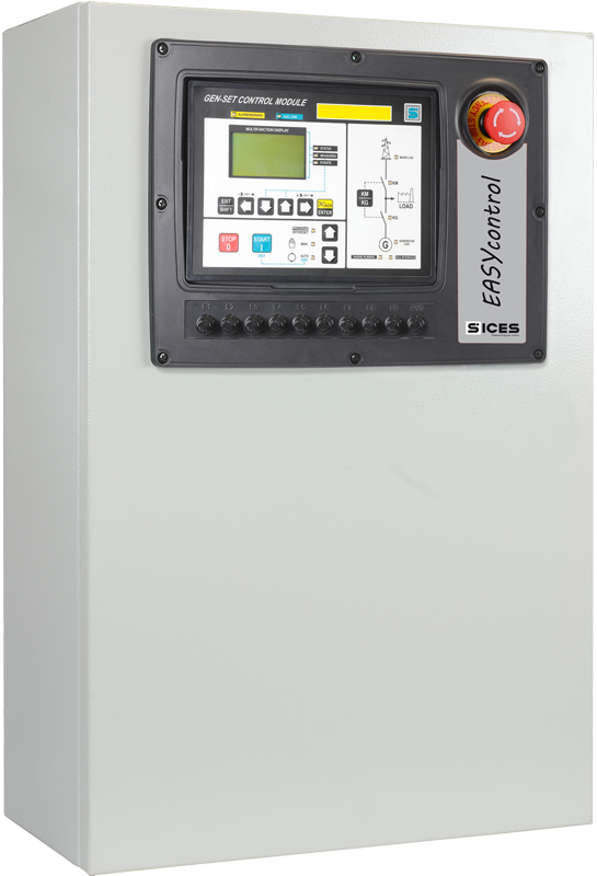 O painel de controle automático EASYcontrol é um quadro automático para grupos geradores em funcionamento singelo. O EASY control é equipado com nosso controlador microprocessado AMF GC310 ou GC315, que permite uma gestão fácil e segura de qualquer grupo gerador de emergência ou de produção sem paralelismo com a Rede, de forma completamente automática e com possibilidade de monitoramento e comando remoto. Especialmente adequado para reformas de geradores obsoletos e analógicos ou reforma de GMG das Empresas de Aluguel. Possui todos os circuitos e as funções necessárias para o funcionamento automático do GMG, que são: carregador de bateria, pré aquecimento da Água do motor, TC para medidas de correntes, botão de emergência, borneira para interligação dos comandos.